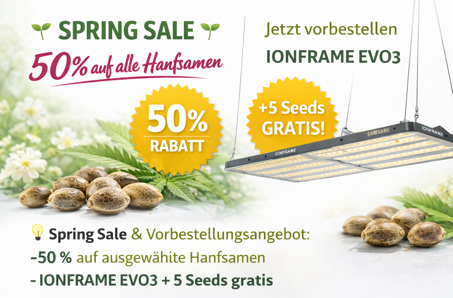 Sichere dir jetzt 50 % Rabatt auf ausgewählte Hanfsamen und entdecke unser aktuelles Spring-Sale-Sortiment.